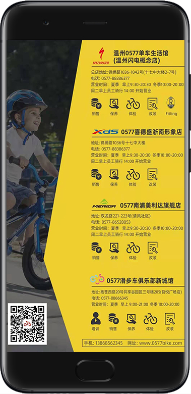 溫州市0577單車(chē)成立于2005年,主營(yíng)高端自行車(chē)、零配件、裝備。集銷(xiāo)售、保養、體驗、改裝于一體的全能化單車(chē)生活館。目前經(jīng)營(yíng)的都是國際知名自行車(chē)品牌,現有美國閃電、大行、xds、臺灣美利達。