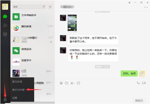 第一步: 登錄電腦版微信,進(jìn)入電腦版微信聊天頁(yè)面,點(diǎn)擊左下角的【備份與恢復】。