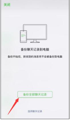 第三步:完成上一步后,手機端詢(xún)問(wèn)是否備份聊天記錄,點(diǎn)擊【備份全部聊天記錄】。也可以選擇聊天記錄進(jìn)行備份。
