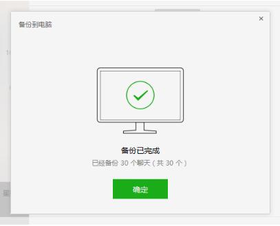 第四步:確認備份文件后,微信開(kāi)始備份聊天記錄。備份完成后電腦端和設備端均會(huì )提示備份已完成。