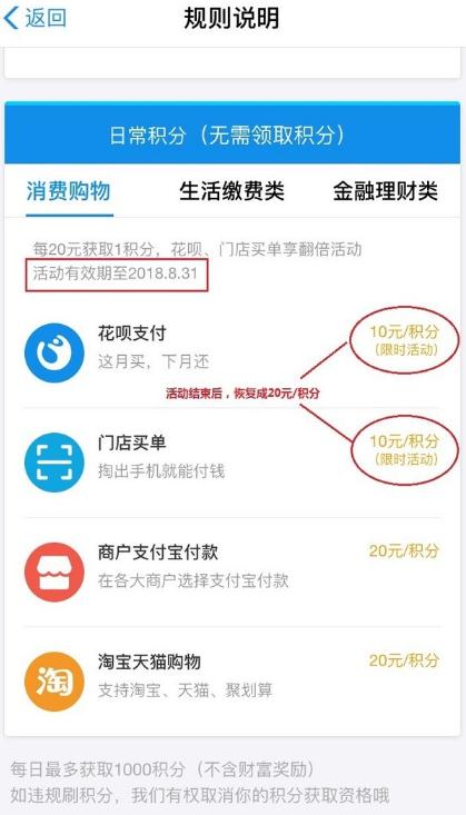 從支付寶的官方通知中可以看到,花唄、門(mén)店買(mǎi)單的積分翻倍活動(dòng)將于8月31日到期。對于支付寶積分有重度依賴(lài)的同學(xué)不算是個(gè)好消息,而對于手中持有多行信用卡的朋友沒(méi)有太大影響,畢竟消費領(lǐng)域的各項福利你們幾乎都能囊括。