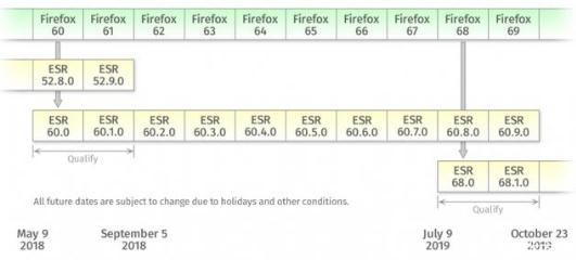 目前最新的 Firefox 版本為本周三推出的 Firefox 62,而最新的 ESR 版本為 Firefox 60.2。