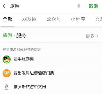 例如搜索“旅游”,則會(huì )出現于旅游相關(guān)的小程序服務(wù):