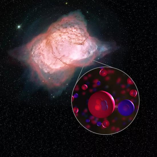 在宇宙初期,化學(xué)是怎樣誕生的?數十年前,就有科學(xué)家提出,氦合氫離子(HeH+)是宇宙中的第一個(gè)化學(xué)反應產(chǎn)物,但科學(xué)家一直無(wú)法證實(shí)該物質(zhì)存在于宇宙環(huán)境中。終于,在最新的《自然》雜志中,科學(xué)家從行星狀星云 NGC 7027 中探測到 HeH+,這是人們首次在宇宙中探測到這種離子。