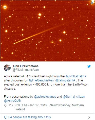 天文學(xué)家在 1988 年首次發(fā)現這顆小行星,但直到最近才開(kāi)始對其進(jìn)行密切關(guān)注。2018 年年底和 2019 年年初的觀(guān)測結果顯示,這顆太空巖石正在出現類(lèi)似彗星的“尾巴”,這對于一顆小行星來(lái)說(shuō)是罕見(jiàn)的。