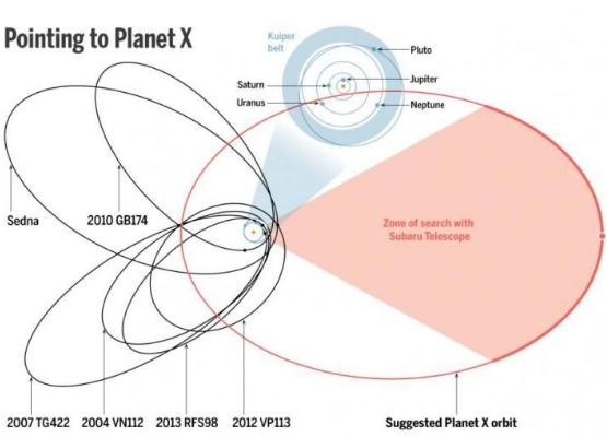 假想存在的十號行星軌道圖。