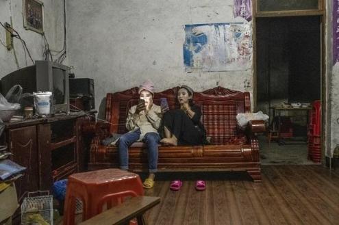 銅關(guān)村的兩名年輕姑娘正在拿智能手機連接網(wǎng)絡(luò )看視頻。