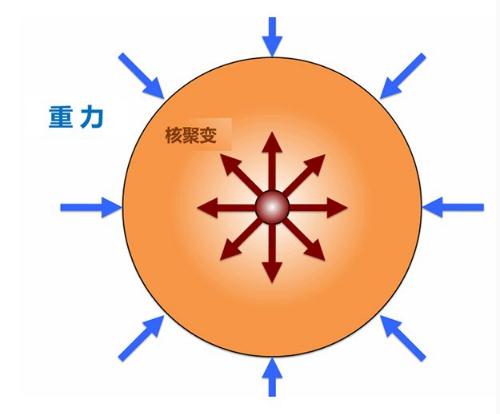使恒星向內坍縮的重力與使恒星向外膨脹的核聚變反應在主序恒星階段達到平衡。