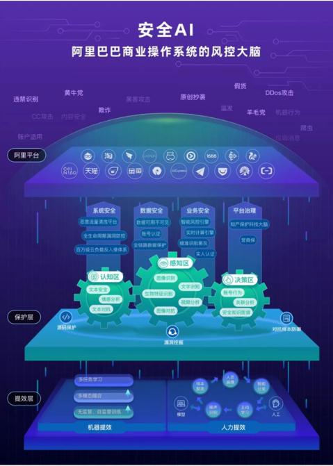 在今年,阿里巴巴的“風(fēng)控大腦”首次在天貓雙 11 場(chǎng)景中全面應用安全 AI 能力,運用機器學(xué)習、神經(jīng)網(wǎng)絡(luò )等形成的 1258 個(gè)算法模型,打通過(guò)去分散的數據、風(fēng)險類(lèi)型,實(shí)現自動(dòng)決策、智能對抗、實(shí)時(shí)處理,精準識別黑灰產(chǎn)行為,保障商家和平臺的補貼紅包能夠真正惠及消費者。
