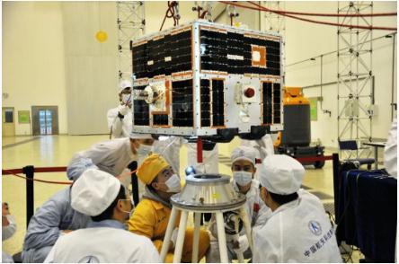 “天琴一號”技術(shù)試驗衛星研制現場(chǎng)。中國航天科技集團五院供圖