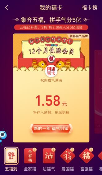 支付寶五福開(kāi)獎超3億人分5億 大多分到1.68元