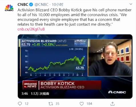 據外媒 CNBC 報道,在疫情期間動(dòng)視暴雪 CEO Bobby Kotick 為公司所有 1 萬(wàn)多名員工公開(kāi)了自己的手機號。他表示,“我們鼓勵每個(gè)對自身健康擔憂(yōu)的員工直接與我聯(lián)系”。