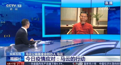 4 月 17 日晚,央視《1+1》欄目主持人白巖松連線(xiàn)馬云,就疫情暴發(fā)以來(lái)馬云以及阿里巴巴集團向全世界多個(gè)國家和地區捐贈抗疫物資進(jìn)行專(zhuān)訪(fǎng)。
