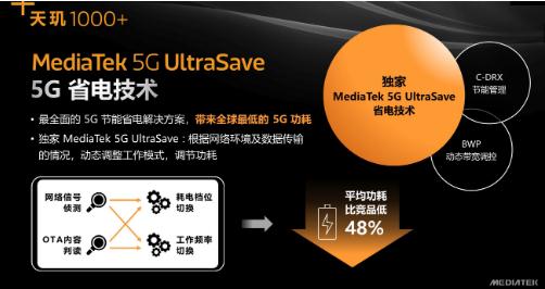 據了解,天璣 1000+ 搭載了 MediaTek 5G UltraSave 省電技術(shù),平均功耗較同級競品低 48%。聯(lián)發(fā)科技表示,其 5G UltraSave 技術(shù)可以根據網(wǎng)絡(luò )環(huán)境及數據傳輸情況,動(dòng)態(tài)調整調制解調器的工作模式,包括電源配置和工作頻率等,結合 BWP 動(dòng)態(tài)帶寬調控、C-DRX 節能管理,全面降低終端的 5G 功耗,從而實(shí)現節能省電,帶來(lái)更長(cháng)效的 5G 續航。