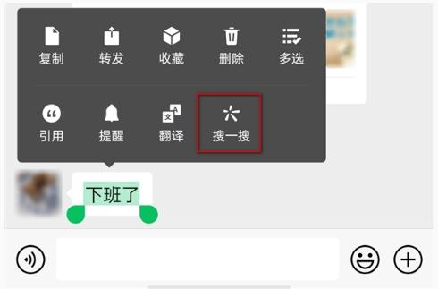 全量上線(xiàn)后,用戶(hù)可以在對話(huà)框中長(cháng)按選擇文本,彈出的導航欄中的最后一個(gè)功能為“搜一搜”。