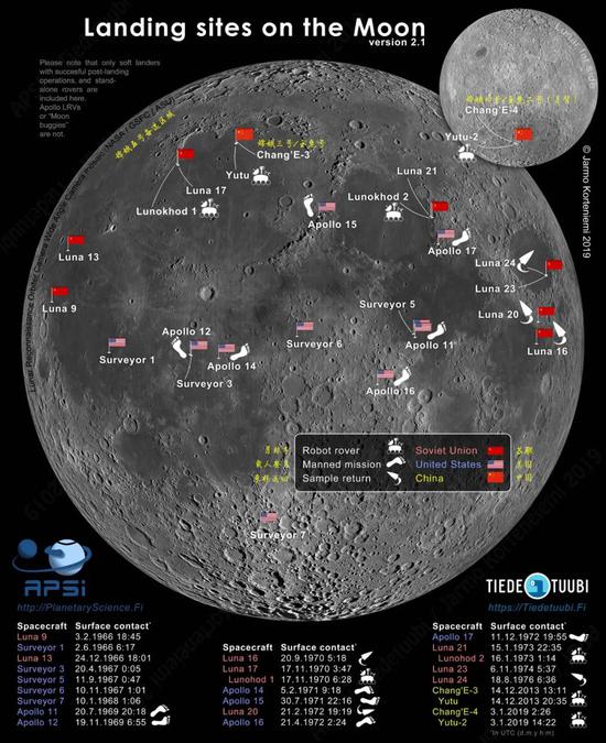1969 年 7 月至 1972 年 12 月,美國通過(guò)阿波羅 11 號到阿波羅 17 號載人飛船實(shí)施了 7 次載人登月任務(wù),除了阿波羅 13 號因發(fā)生故障中途返回,其余 6 艘飛船皆完成登月,成功將 12 名航天員送上月球,共帶回月壤和月巖樣品約 381.7 千克。
