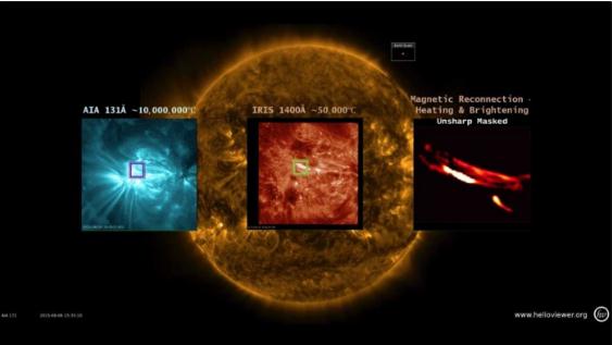 在觀(guān)察直徑約 60 英里的非常小而明亮的環(huán)狀物時(shí),發(fā)現這些環(huán)狀物比周?chē)沫h(huán)境熱了數百萬(wàn)度。經(jīng)過(guò)研究確定能夠產(chǎn)生所指出的效應的唯一加熱機制必須來(lái)自磁重聯(lián)。研究人員仍在努力確認,所研究的物體在太陽(yáng)各地經(jīng)常出現,足以解釋日冕的極端熱量。