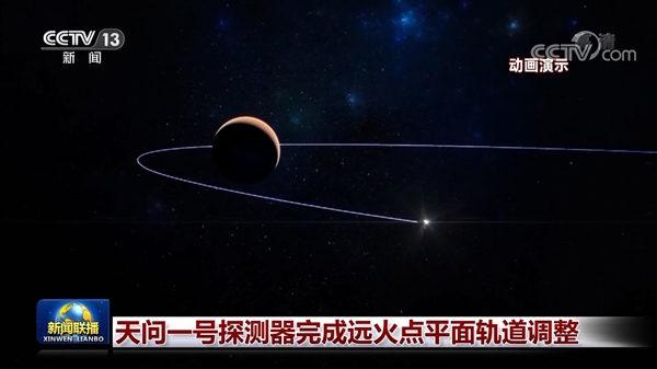 天問(wèn)一號探測器完成遠火點(diǎn)平面軌道調整 距離火星265公里