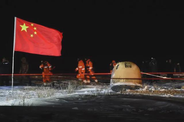 ▲資料圖片:2020 年 12 月 17 日凌晨,嫦娥五號返回器攜帶月球樣品,在內蒙古四子王旗預定區域安全著(zhù)陸。