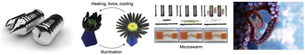 從結構到功能和復雜性日益增加的智能物質(zhì)的概念轉換:合成后不能改變其性質(zhì),如純硅;光響應記憶合成材料向日葵環(huán)境自適應的打開(kāi)和關(guān)閉;章魚(yú)的觸手,帶有嵌入式傳感器、執行器和神經(jīng)系統(來(lái)源:Nature)