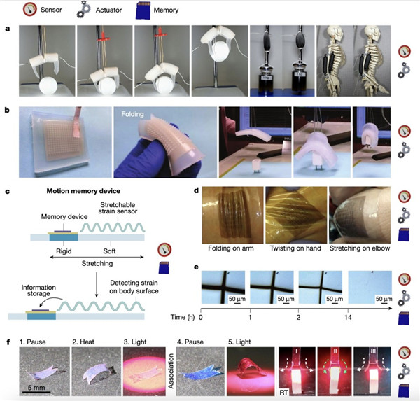 在生物系統中,柔軟性、彈性和柔順性是顯著(zhù)的特征,軟體動(dòng)物能夠在擁擠的環(huán)境中實(shí)現連續變形,天然皮膚也表現出基本智能的顯著(zhù)特性,包括力、壓力、形狀、質(zhì)地和溫度的觸覺(jué)、觸覺(jué)記憶乃至自愈能力。