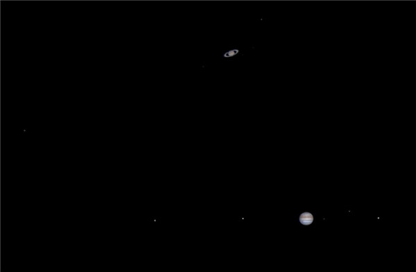 北京市天文愛(ài)好者宗海陽(yáng)2020年12月21日拍攝的土星和木星“相合”。(本人供圖)