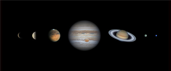 廣東省天文愛(ài)好者周志偉2020年拍攝的水星、金星、火星、木星、土星、天王星、海王星(多張疊加)。(本人供圖)