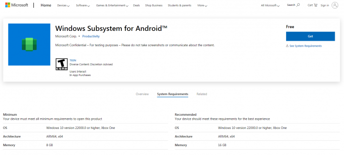 有趣的是,Microsoft Store 頁(yè)面警告稱(chēng),用戶(hù)不應該截取 WSA 的屏幕界面或泄露其它內容,暗示目前仍處于僅限于微軟員工的內部測試階段。