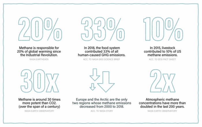 自工業(yè)革命以來(lái),由于石油、天然氣和煤炭的大量使用,對牛肉和乳制品的需求增加,以及食物和有機廢物的生產(chǎn)增加,大氣中的甲烷濃度已經(jīng)增加了一倍多。盡管大氣中甲烷濃度的增加在接近 20 世紀末時(shí)明顯放緩,但自 2006 年以來(lái),濃度一直在大幅增加,這可能是由于飼養牲畜、重新依賴(lài)天然氣以及近年來(lái)的濕地和全球變暖所造成的排放上升。