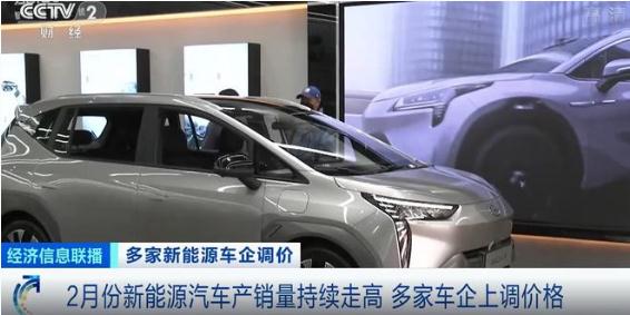 中國汽車(chē)工業(yè)協(xié)會(huì )今天(11 日)公布的最新數據顯示,今年 2 月份,我國新能源汽車(chē)產(chǎn)銷(xiāo)分別完成 36.8 萬(wàn)輛和 33.4 萬(wàn)輛,同比分別增長(cháng) 2 倍和 1.8 倍。在新能源車(chē)銷(xiāo)量大增的同時(shí),不少車(chē)企近期也紛紛上調價(jià)格,來(lái)看記者走訪(fǎng)市場(chǎng)了解的情況。