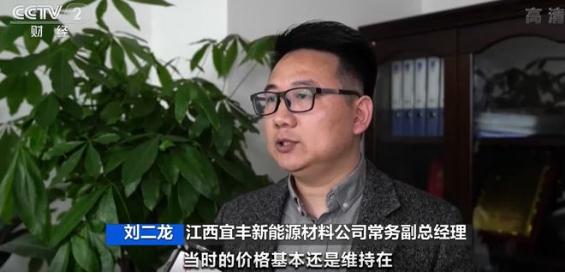 江西宜豐新能源材料公司常務(wù)副總經(jīng)理劉二龍:當時(shí)的價(jià)格基本維持在 5 萬(wàn)元每噸左右,但是經(jīng)過(guò)一年多的時(shí)間,現在已經(jīng)漲到了 50 萬(wàn)元每噸。