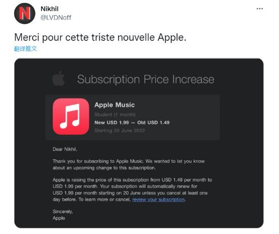 蘋(píng)果給南非學(xué)生訂閱用戶(hù)的一封電子郵件中寫(xiě)道:“感謝您訂閱 Apple Music。我們想讓您知道此訂閱即將發(fā)生的變化,這項訂閱的價(jià)格將從每月 1.49 美元提高到每月 1.99 美元。”