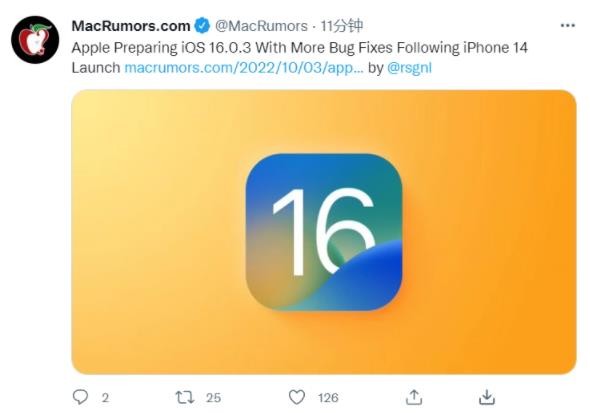 外媒 MacRumors 稱(chēng),從分析日志中得到了即將到來(lái)的 iOS 16.0.3 軟件更新的證據,這在過(guò)去一直是一個(gè)可靠的指標。