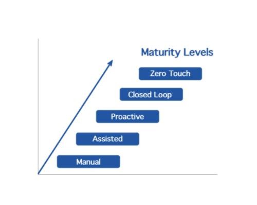 該工具還為運營(yíng)商繪制了五個(gè)層次自動(dòng)化的路徑,從最早的輔助自動(dòng)化,到最先進(jìn)的零接觸,在這一階段,自動(dòng)化的、意圖驅動(dòng)的 AI 能力可以預測網(wǎng)絡(luò )故障和問(wèn)題,并通過(guò)閉環(huán)學(xué)習提供網(wǎng)絡(luò )優(yōu)化決策。