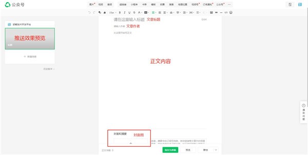 3.進(jìn)入到圖文消息后,我們就看到了編輯文章的地方,根據需求寫(xiě)好文章標題內容等信息,然后上傳文章封面圖片。如果只是簡(jiǎn)單的文字信息可以直接在此處編輯,如果想讓文章更豐富一些,有很多樣式效果,那么就去外面專(zhuān)門(mén)的編輯器網(wǎng)站編寫(xiě)文章,里面有很多樣式效果,邊框,圖片等可以選擇,讓你的文章看著(zhù)更豐富更好看。