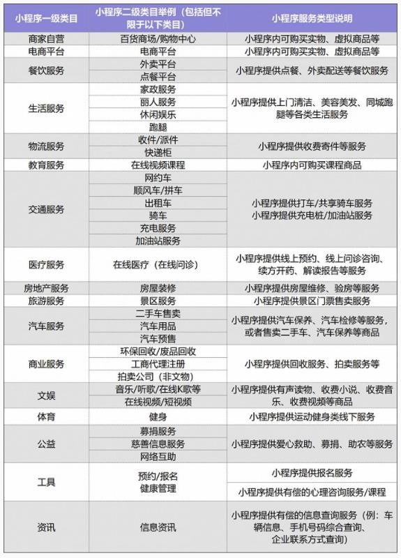 涉及的小程序的類(lèi)目如下: