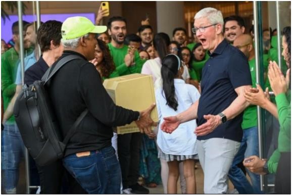 印度當地媒體 The New Indian 全程記錄了 Apple BKC 的開(kāi)幕過(guò)程,并拍攝到了庫克張大嘴巴,感到驚訝的一幕。IT之家翻譯該媒體推文內容如下: