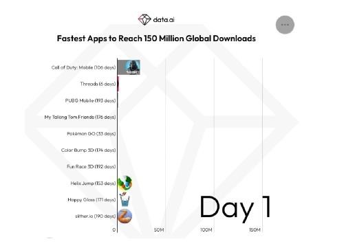 但 data ai 指出,Threads 的增長(cháng)勢頭遠未結束。該應用上線(xiàn) 6 天下載量就突破了 1.5 億次,而 Niantic 的《精靈寶可夢(mèng)》達到這一關(guān)卡則用了 33 天。后者 2016 年 7 月發(fā)布,之前一直保持著(zhù)發(fā)布初期最快下載速度的記錄。