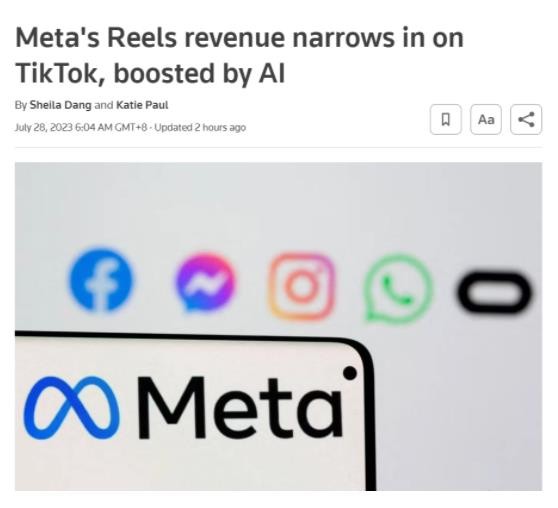 據路透社報道,Meta 周三公布的數據顯示,Reels 視頻的用戶(hù)和廣告商增長(cháng)迅猛,并且正在迅速趕上字節跳動(dòng)旗下的 TikTok。