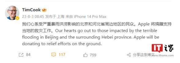 庫克:蘋(píng)果將捐贈支持北京和河北省周邊地區救災工作 09:45:44
