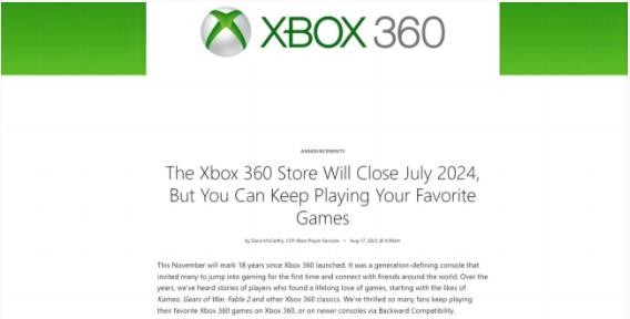近日,微軟宣布將在 2024 年 7 月 29 日正式關(guān)閉 Xbox 360 線(xiàn)上游戲商城,這意味著(zhù),明年的 7 月 29 日后,玩家將無(wú)法在 Xbox 360 商城購買(mǎi)游戲、DLC 及其他娛樂(lè )內容,不過(guò)所有向后兼容 Xbox One 或X/S系列的 Xbox 360 游戲和 DLC 仍可在 Xbox One 或 Xbox Series 商城購買(mǎi)。