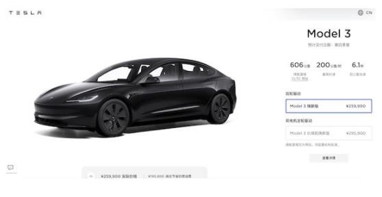 市場(chǎng)期待已久的新款Model 3正式上線(xiàn)。不過(guò),特斯拉中國官網(wǎng)顯示,新款Model 3的售價(jià)并不是此前業(yè)內所預期的20萬(wàn)元左右,而是分為兩個(gè)版本Model 3煥新版和長(cháng)續航煥新版,售價(jià)分別為25.99萬(wàn)元和29.59萬(wàn)元,預計交付時(shí)間為今年第四季度。