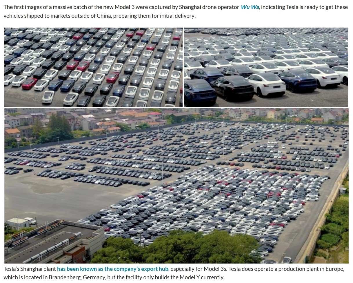 外媒根據名為 Wu Hua 的航拍者的照片,預估特斯拉已準備將上海超級工廠(chǎng)所生產(chǎn)的 Model 3 煥新版出口到歐洲市場(chǎng),相關(guān)照片顯示出,特斯拉上海超級工廠(chǎng)外已停放有大量新生產(chǎn)的新款 Model 3 汽車(chē)。