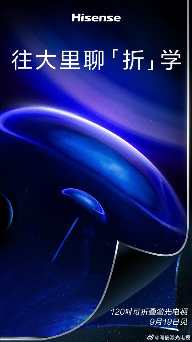 隨著(zhù)折疊屏手機的問(wèn)世,有關(guān)折疊屏的產(chǎn)品也越來(lái)越多,近日,海信激光電視官方微博發(fā)文稱(chēng),120 寸可折疊激光電視,9 月 19 日見(jiàn)。在消費者的傳統觀(guān)念當中,只有小屏幕才能夠折疊,電視那么大即使能折疊又有什么必要呢?