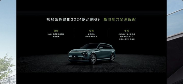 新款 G9 的「加法」做在了架構技術(shù)上,2024 版的 G9 將會(huì )標配更多扶搖架構的核心技術(shù)。何小鵬認為,盡管去年的 G9 也使用了相當多扶搖架構的技術(shù)元素,但小鵬認為新款能夠在智能、電能以及性能上做得更加出色。
