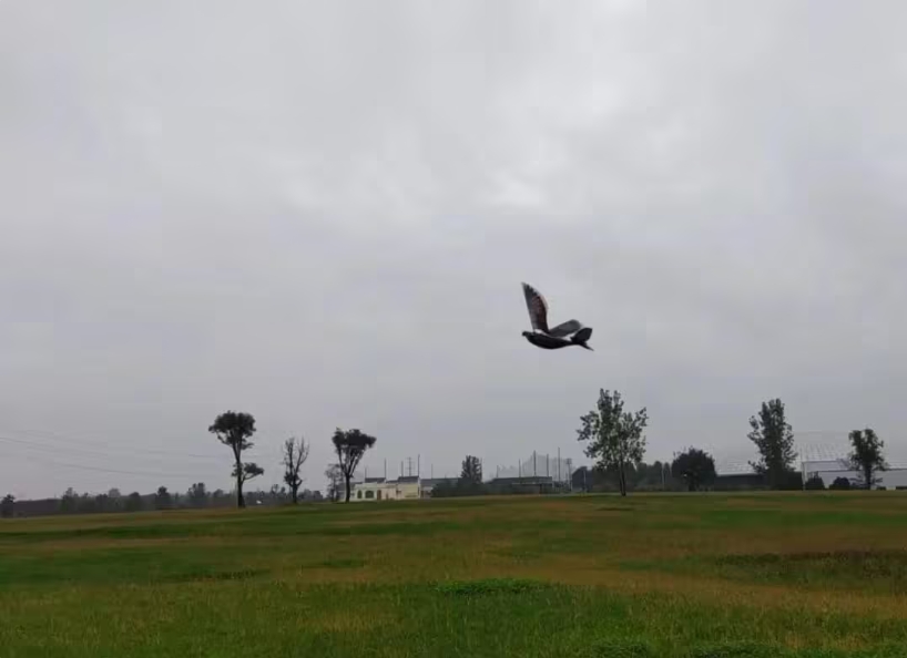 團隊 2021 級博士研究生柳柳說(shuō),由于“信鴿”過(guò)于逼真,在試飛中,常引來(lái)真的鳥(niǎo)類(lèi)伴飛。