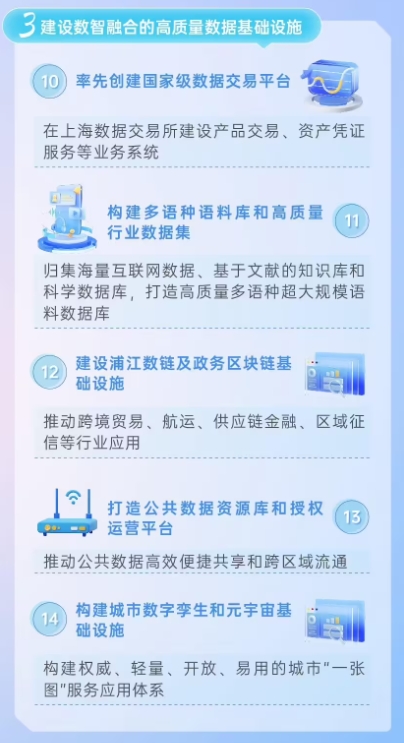 公告稱(chēng),此方案旨在進(jìn)一步推進(jìn)具有上海特色的新型基建、加快推進(jìn)上海城市數字化轉型,提升城市能級、核心競爭力。部分目標、任務(wù)如下:
