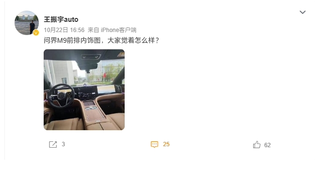 昨日開(kāi)始,微博多名博主陸續曬出了問(wèn)界旗艦 SUV 車(chē)型 M9 的前排內飾布局,這款新車(chē)的座艙和中控部分這次以更清晰的方式展現。