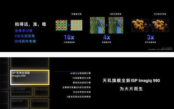 全新旗艦 ISP Imagiq 990 是安卓首款支持獨立防抖專(zhuān)核、首款支持 3 麥克風(fēng) HDR 立體聲錄音降噪,還支持 AI 語(yǔ)意分割視頻引擎、16 層圖像語(yǔ)意分割、景深和光斑雙引擎、全像素對焦疊加 2 倍無(wú)損變焦等,是目前最強大的 ISP 之一。