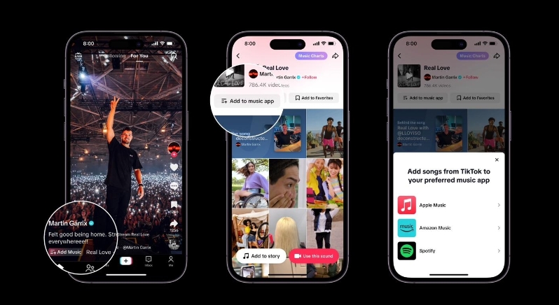 TikTok 推出新功能,可將歌曲添加到 Apple Music、Spotify 和 Amazon Music 音樂(lè )庫中